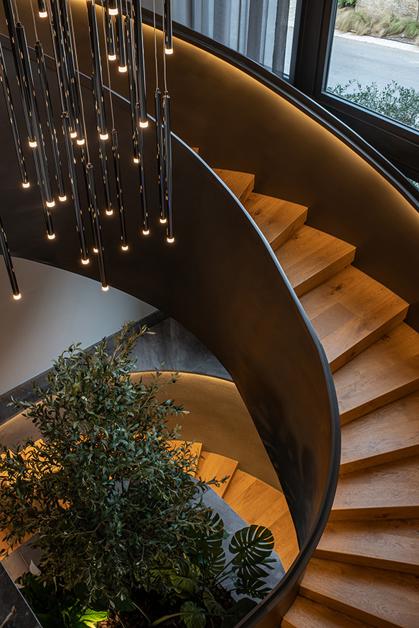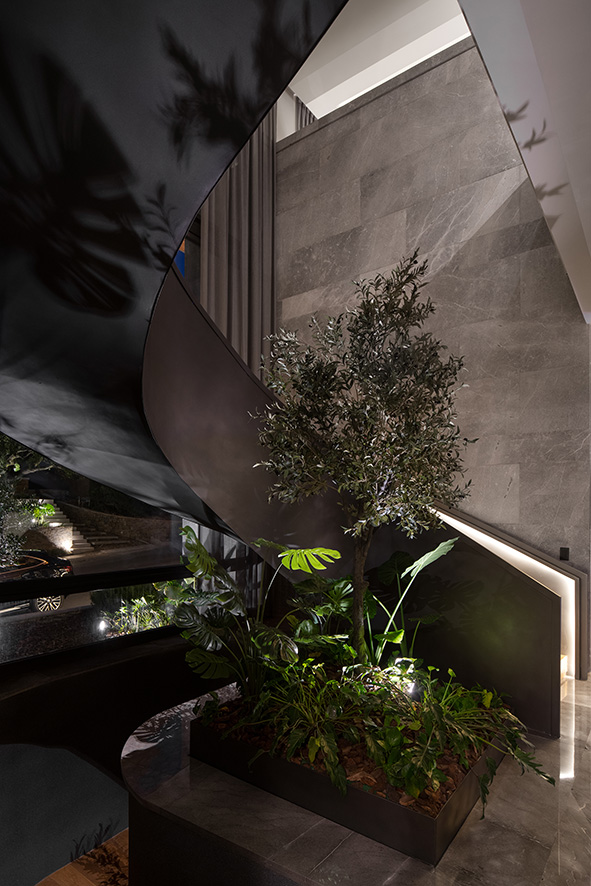 El concepto de los cuatro elementos de la naturaleza es el núcleo simbólico del proyecto, representando el origen de la existencia y la interconexión de todos los seres vivos, estos elementos se manifiestan a través de recursos arquitectónicos que transmiten un sentimiento etéreo y sofisticado. El fuego, por ejemplo, se representa con cuarzo translúcido retroiluminado, simbolizando la energía primordial que ha impulsado la evolución humana, los espejos de agua reflejan la conexión espiritual que se establece con el entorno, mientras que los elementos orgánicos, como las plantas y los detalles en el diseño, evocan el aire, el flujo de la vida misma.