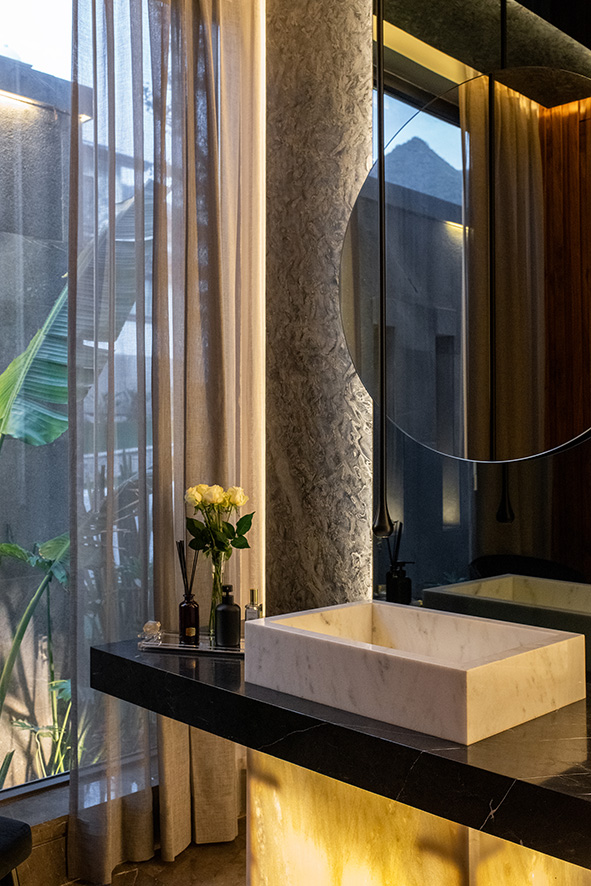 Materiales de alta gama, mobiliario sofisticado, acentos y texturas fueron elegidos con el objetivo de intensificar esa conexión con la naturaleza, mientras que los aromas cuidadosamente seleccionados aseguran una experiencia sensorial única.