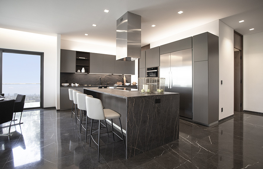 En el interior, el diseño revela espacios amplios, luminosos y sofisticados. Los acabados de alta gama —desde cocinas y baños hasta vestidores— se complementan con mobiliario de reconocidas marcas internacionales. Los pisos, muros y terrazas se unifican en una sinfonía de tonos neutros que evocan serenidad. Detalles como la iluminación indirecta aportan una atmósfera acogedora y sofisticacada.