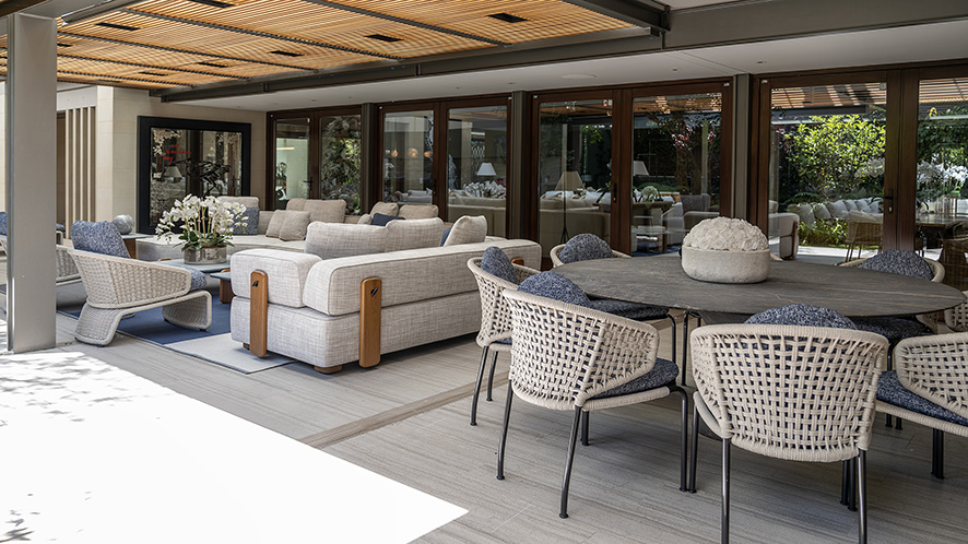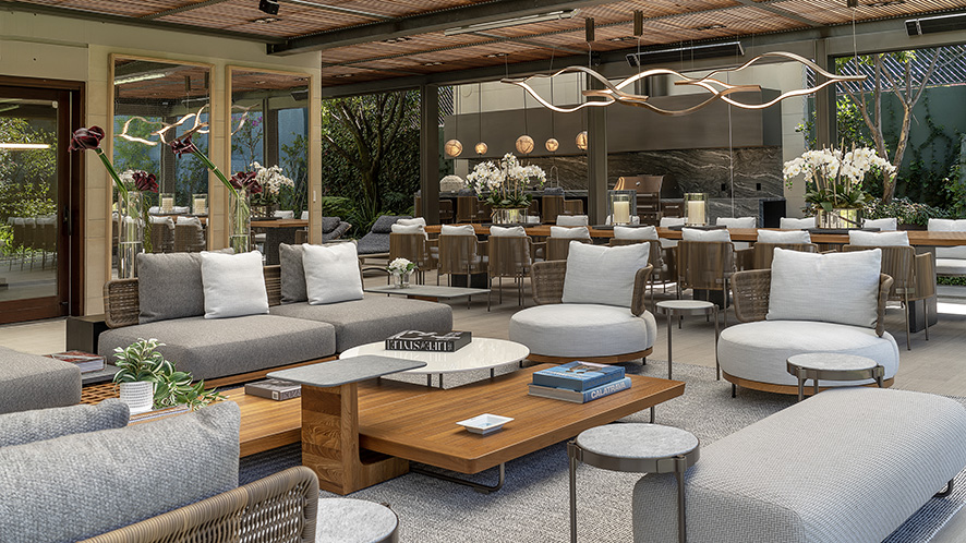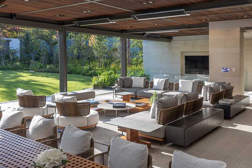 El interiorismo, también a cargo del Arq. Francisco de la Vega, sigue esta línea conceptual, las nuevas terrazas fueron concebidas como zonas de contemplación, diseñadas con gran atención al detalle. El mobiliario seleccionado de las firmas italianas Minotti y Henge, aporta refinamiento a través de materiales nobles y proporciones precisas, generando ambientes de sofisticación contenida. La transición entre espacios se da de forma fluida y natural, permitiendo una conexión visual, táctil y emocional entre interior y exterior.