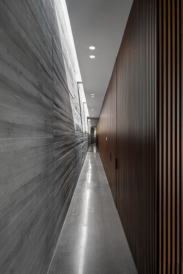 El concepto inicial del proyecto se basó en la idea de crear un monolito de concreto que diera la sensación de estar suspendido en el aire, con voladizos que transmiten una sensación de ligereza, a través de la transparencia de sus espacios, se consigue un efecto visual de gravitación, que invita a la serenidad y favorece la conexión con la naturaleza circundante, las grandes aperturas de piso a techo en las fachadas permiten enmarcar las impresionantes vistas panorámicas desde el interior, mientras que la abundante luz natural llena todos los espacios, generando un ambiente de bienestar y tranquilidad.