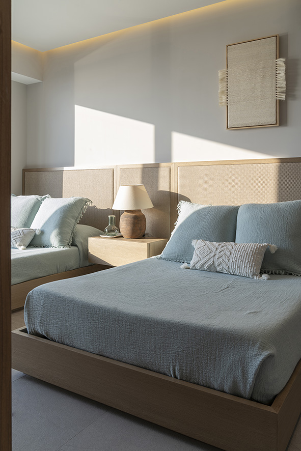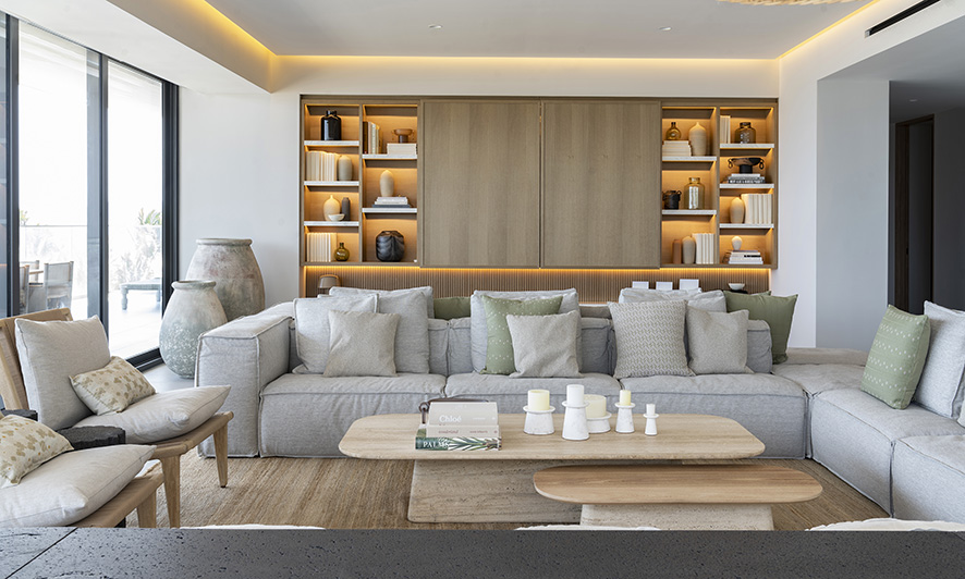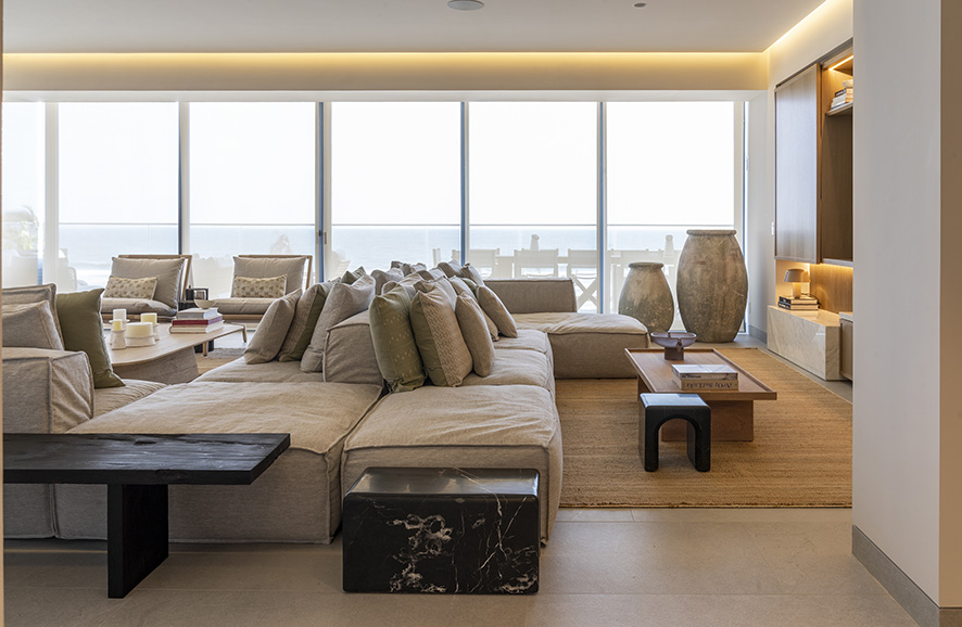 El 90% del mobiliario, el arte y los accesorios seleccionados son de diseño mexicano, elevando el valor del proyecto con piezas coleccionables que transmiten la esencia de nuestra identidad cultural, estos objetos conviven armoniosamente con mobiliario de origen italiano, creando un diálogo entre dos tradiciones de fabricación artesanal que se complementan en su materialidad y manufactura, la riqueza cultural mexicana se pone en evidencia en elementos como los tapetes oaxaqueños de lana, tejidos en telar, que se fusionan con la elegancia y ligereza de los muebles de lino italiano.