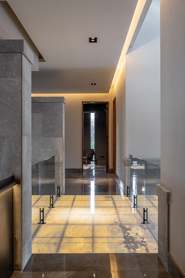 La disposición de la casa responde a la intención de crear ambientes instintivos, donde la armonía entre los materiales y la iluminación juegan un papel fundamental.