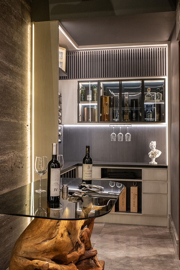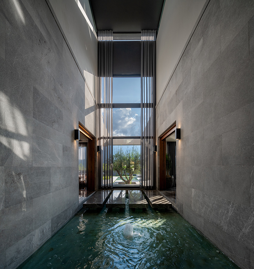 El concepto de los cuatro elementos de la naturaleza es el núcleo simbólico del proyecto, representando el origen de la existencia y la interconexión de todos los seres vivos, estos elementos se manifiestan a través de recursos arquitectónicos que transmiten un sentimiento etéreo y sofisticado. El fuego, por ejemplo, se representa con cuarzo translúcido retroiluminado, simbolizando la energía primordial que ha impulsado la evolución humana, los espejos de agua reflejan la conexión espiritual que se establece con el entorno, mientras que los elementos orgánicos, como las plantas y los detalles en el diseño, evocan el aire, el flujo de la vida misma.