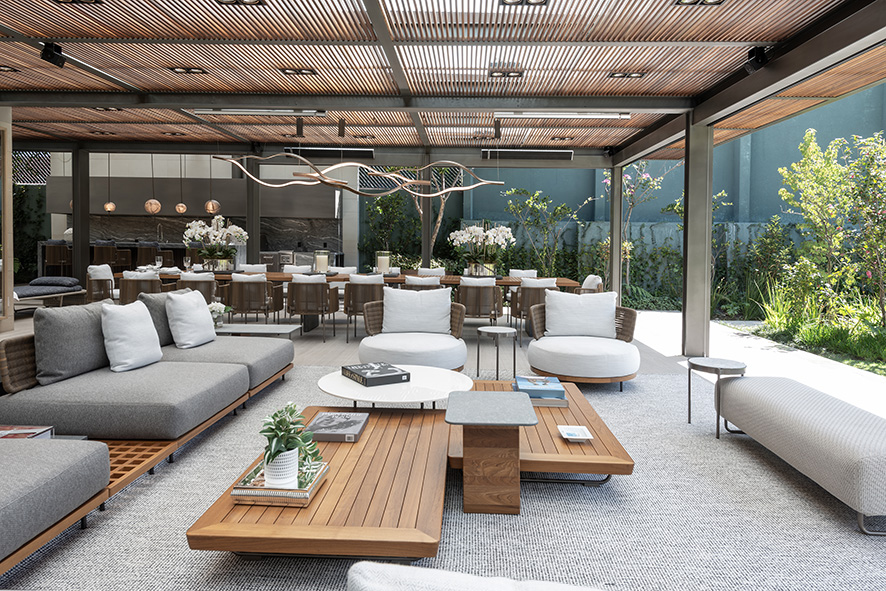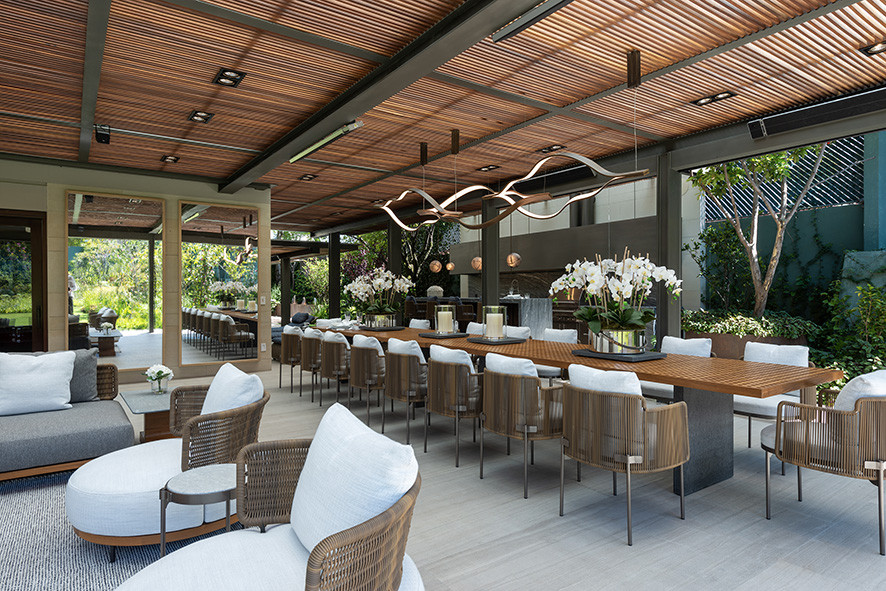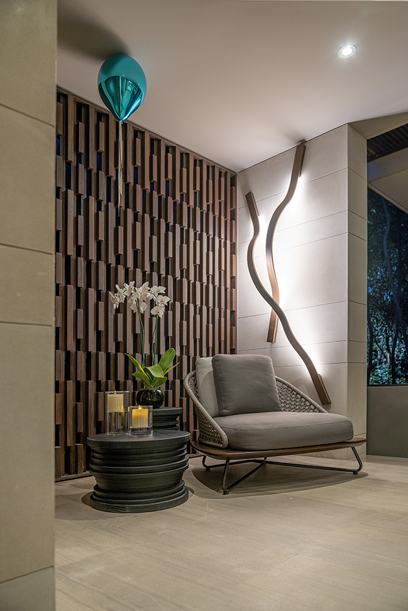 El interiorismo, también a cargo del Arq. Francisco de la Vega, sigue esta línea conceptual, las nuevas terrazas fueron concebidas como zonas de contemplación, diseñadas con gran atención al detalle. El mobiliario seleccionado de las firmas italianas Minotti y Henge, aporta refinamiento a través de materiales nobles y proporciones precisas, generando ambientes de sofisticación contenida. La transición entre espacios se da de forma fluida y natural, permitiendo una conexión visual, táctil y emocional entre interior y exterior.