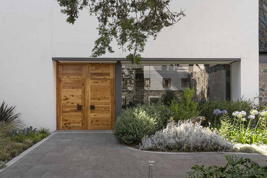 Continuando el recorrido hacia el norte se encuentra el conjunto de edificaciones más recientes que al ingresar nos recibe con un amplio jardín enmarcado por edificios de diferente tipología, convirtiendo a este en un hermoso vestíbulo que nos conecta con la naturaleza y con los diferentes recintos a través de recorridos agradables con una jardinería muy elaborada.