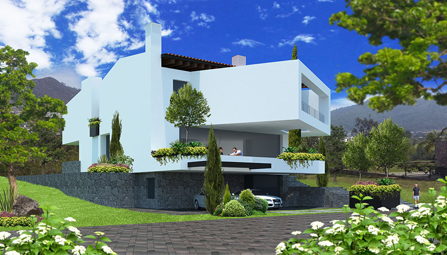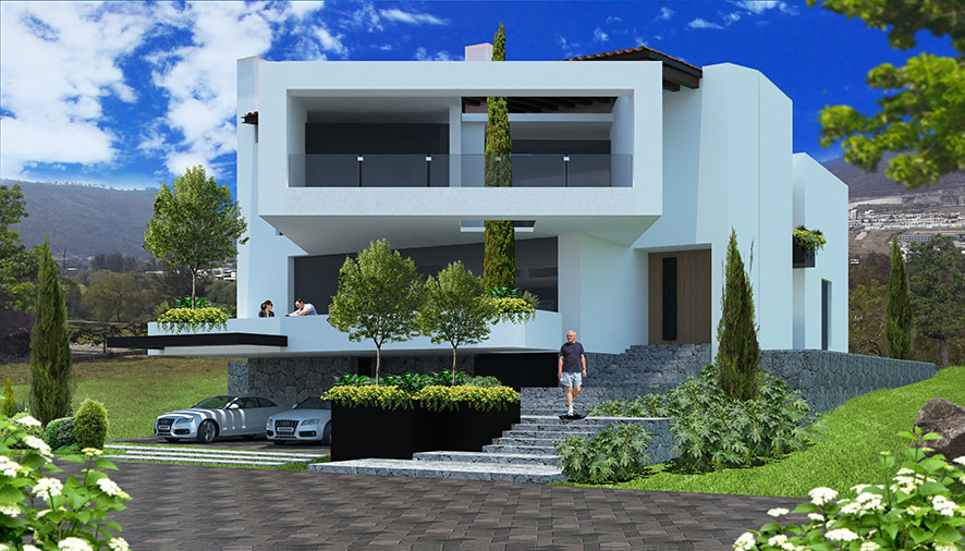 Vivienda de estilo contemporáneo que se caracteriza por su diseño dinámico y arquitectura sólida.