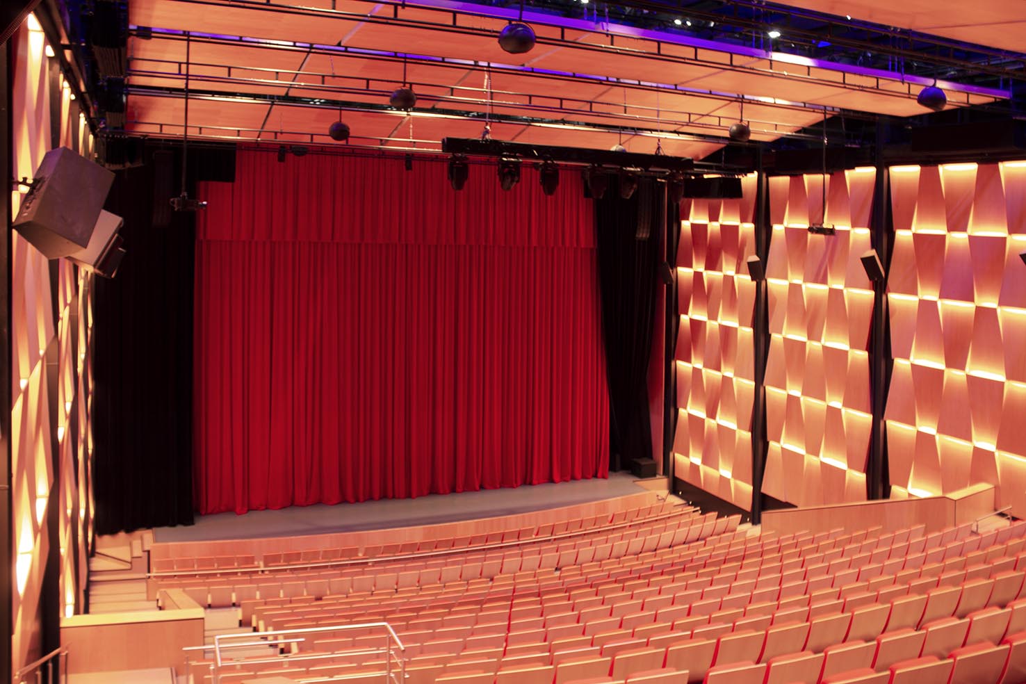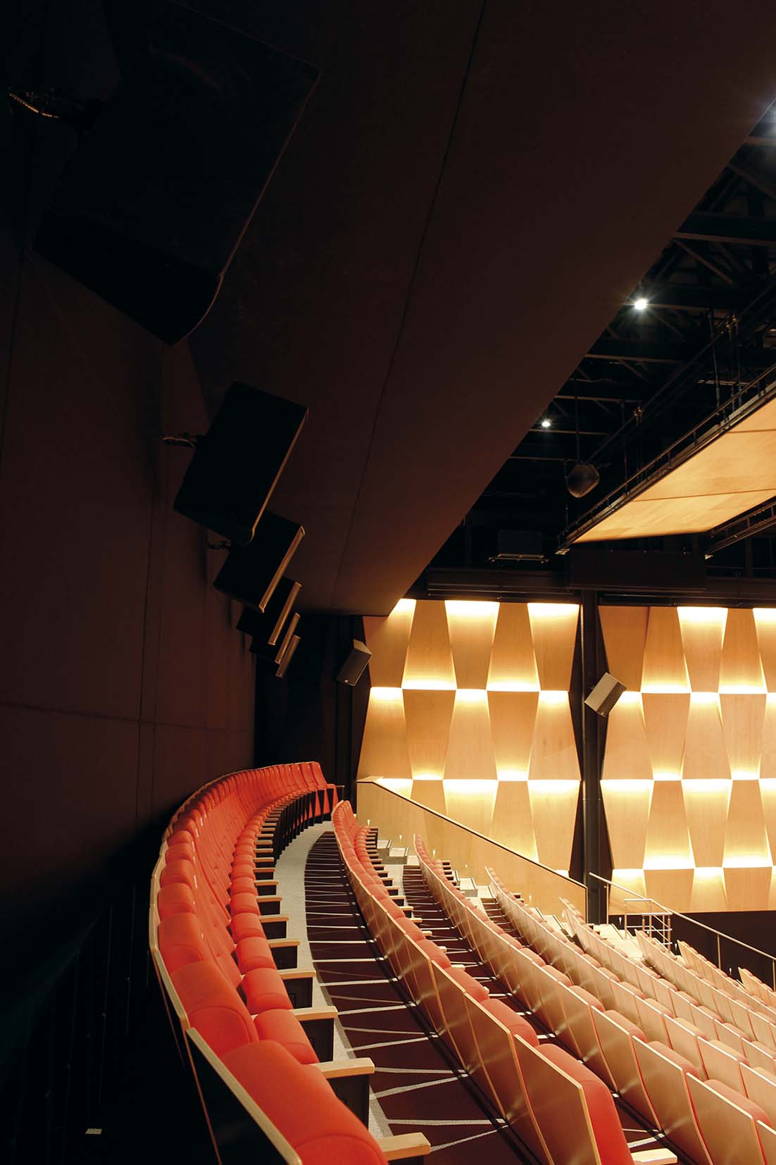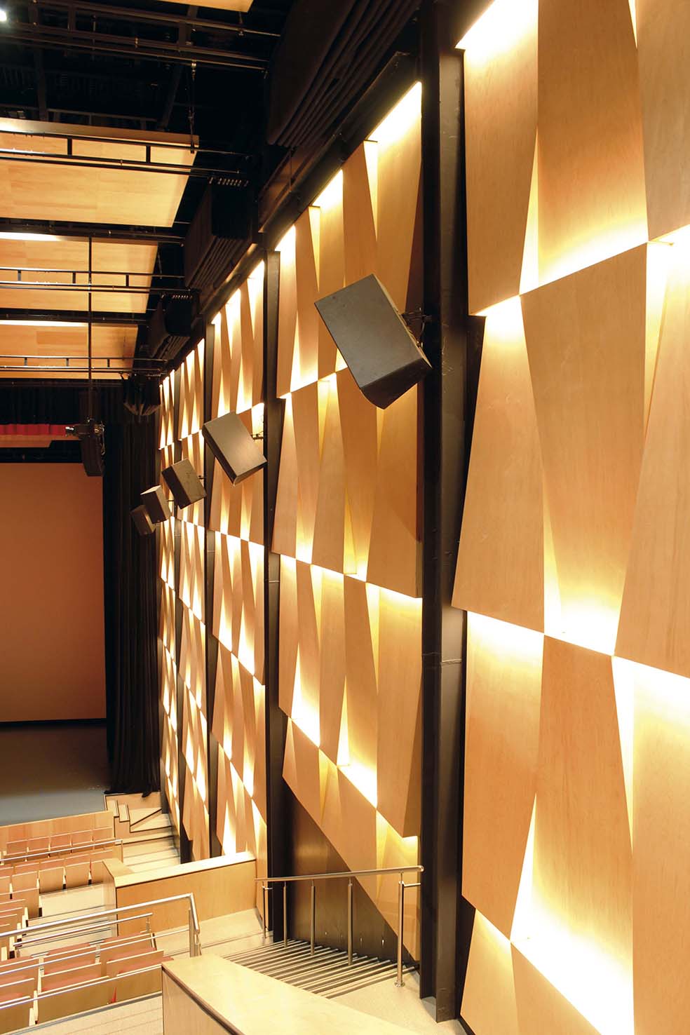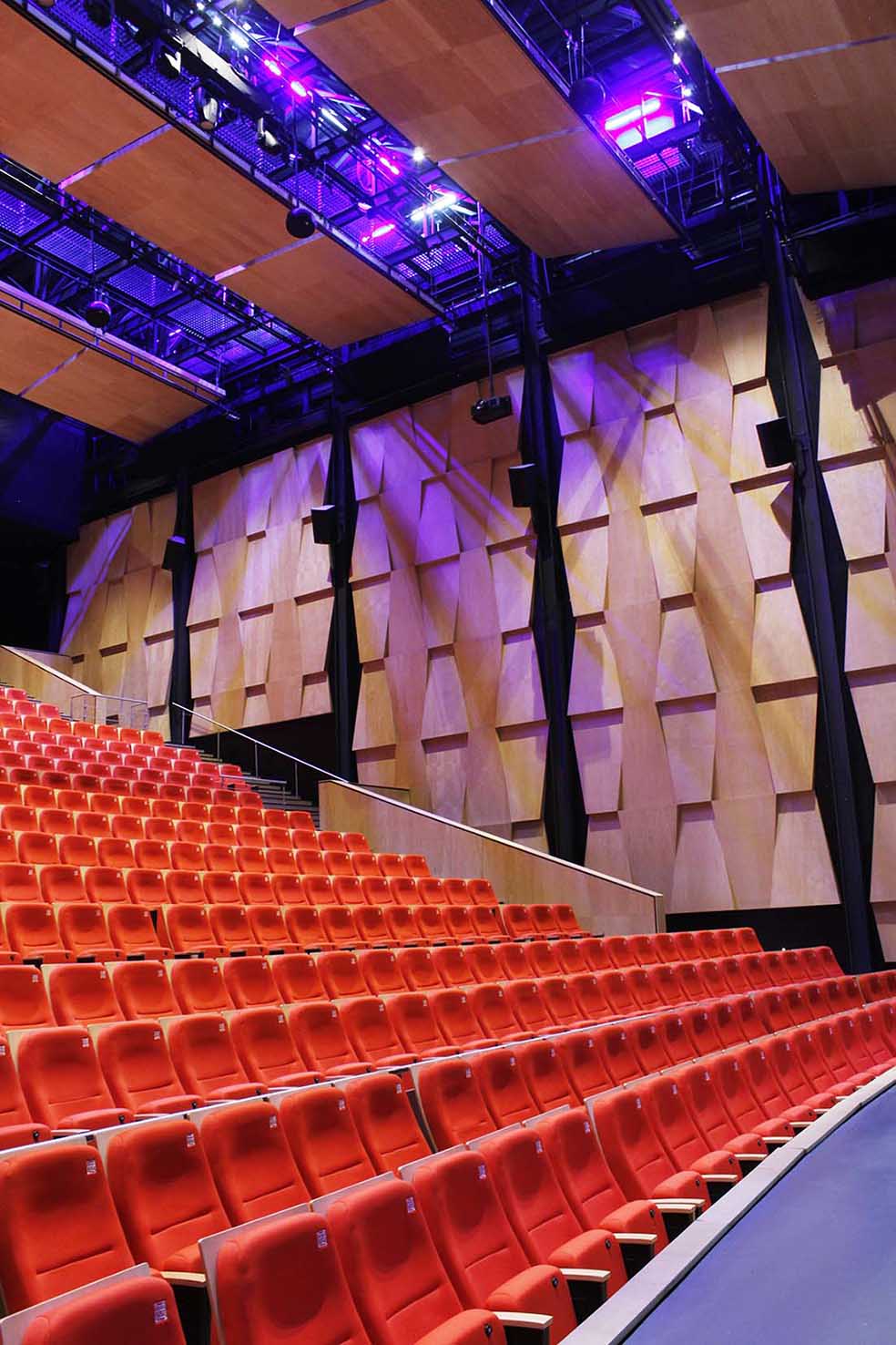 - Muros difusores aparentes: éstos muros, mismos mencionados en el punto número 2, deberán quedar totalmente aparentes cuando el espacio se utilice para conciertos o teatro.