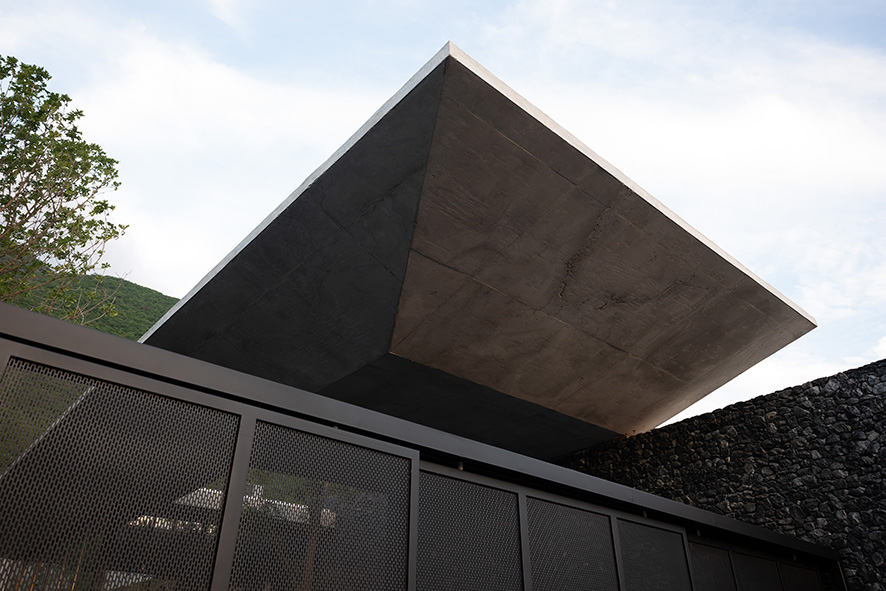 El concepto inicial del proyecto se basó en la idea de crear un monolito de concreto que diera la sensación de estar suspendido en el aire, con voladizos que transmiten una sensación de ligereza, a través de la transparencia de sus espacios, se consigue un efecto visual de gravitación, que invita a la serenidad y favorece la conexión con la naturaleza circundante, las grandes aperturas de piso a techo en las fachadas permiten enmarcar las impresionantes vistas panorámicas desde el interior, mientras que la abundante luz natural llena todos los espacios, generando un ambiente de bienestar y tranquilidad.