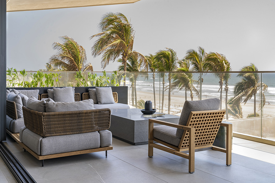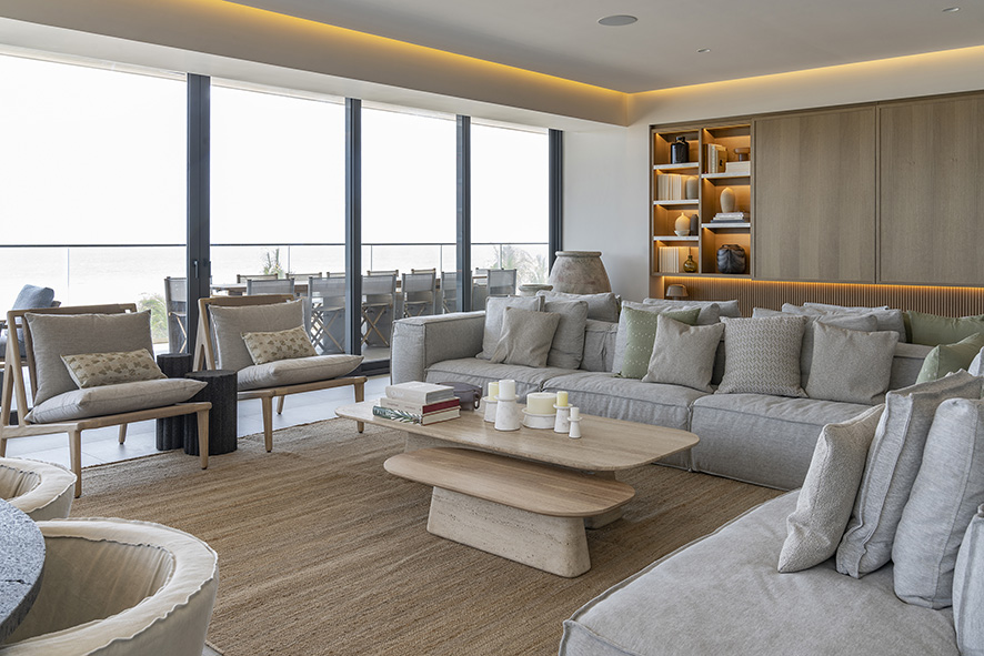 El 90% del mobiliario, el arte y los accesorios seleccionados son de diseño mexicano, elevando el valor del proyecto con piezas coleccionables que transmiten la esencia de nuestra identidad cultural, estos objetos conviven armoniosamente con mobiliario de origen italiano, creando un diálogo entre dos tradiciones de fabricación artesanal que se complementan en su materialidad y manufactura, la riqueza cultural mexicana se pone en evidencia en elementos como los tapetes oaxaqueños de lana, tejidos en telar, que se fusionan con la elegancia y ligereza de los muebles de lino italiano.