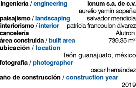 El carácter plástico se logra mediante el uso de materiales naturales y pétreos; mármoles en varios terminados, concreto aparente en modulaciones de alto y bajo relieve y madera para dar calidez a la trama.