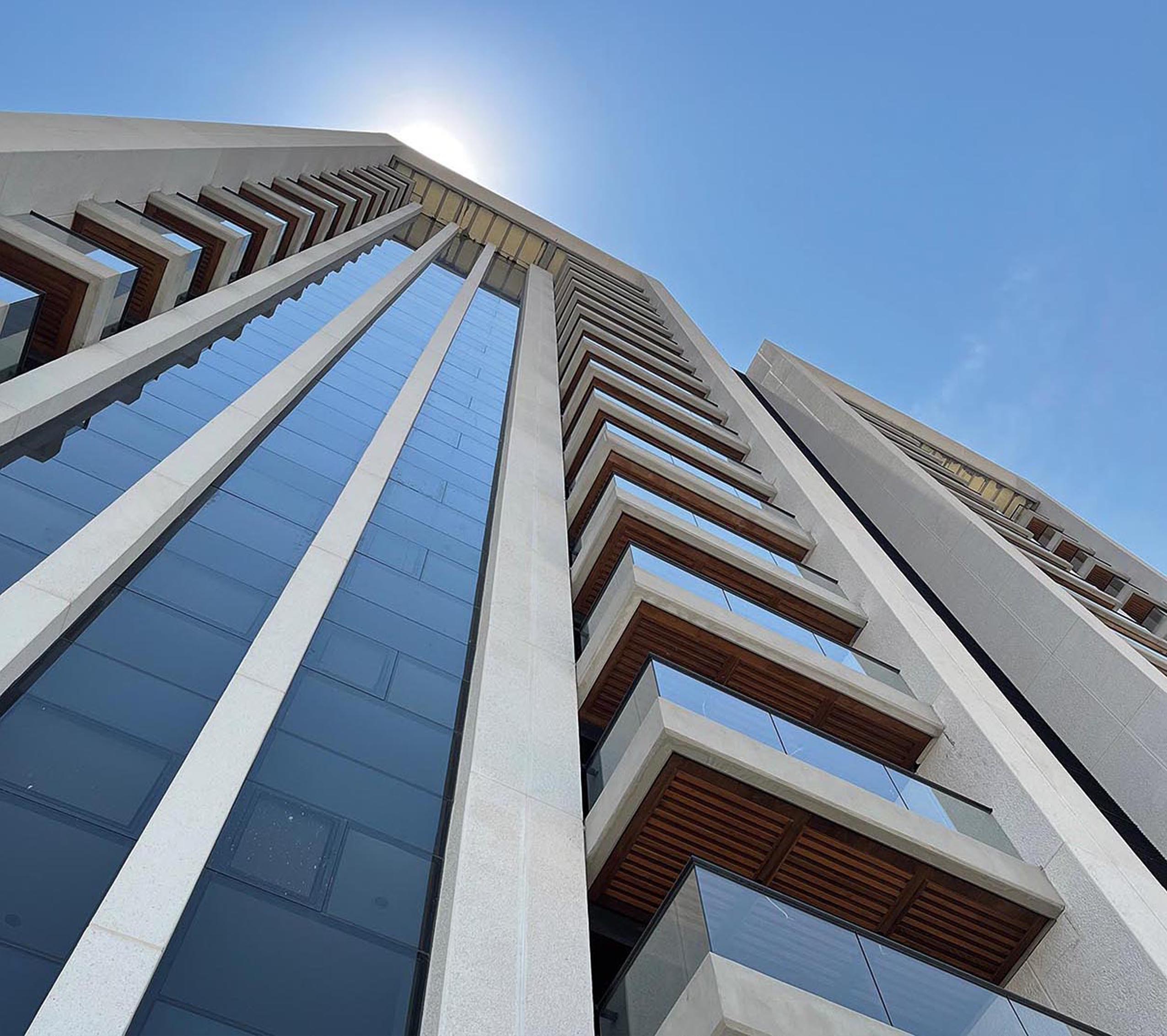 La fachada es un juego entre terrazas y vanos de cristal que dan el carácter, la identidad y la calidez al conjunto, todos los espacios pretenden ser lo mas abierto posible utilizando ventanales de cristal traslúcido para lograr una luminosidad óptima, propia para que los espacios en el interior tengan la máxima calidad y confort.