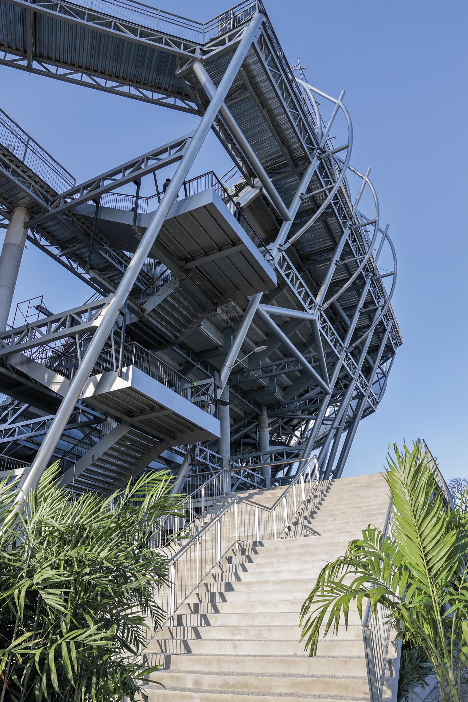 Esta flexibilidad lo permite la explanada ubicada del lado norte del Estadio en la cual se ubican canchas y que puede recibir elementos temporales como stands comerciales, de alimentos y bebidas. En el conjunto están presentes dos tipologías de edificios: elementos permanentes (edificios) y elementos desmontables (gradería y stands comerciales).