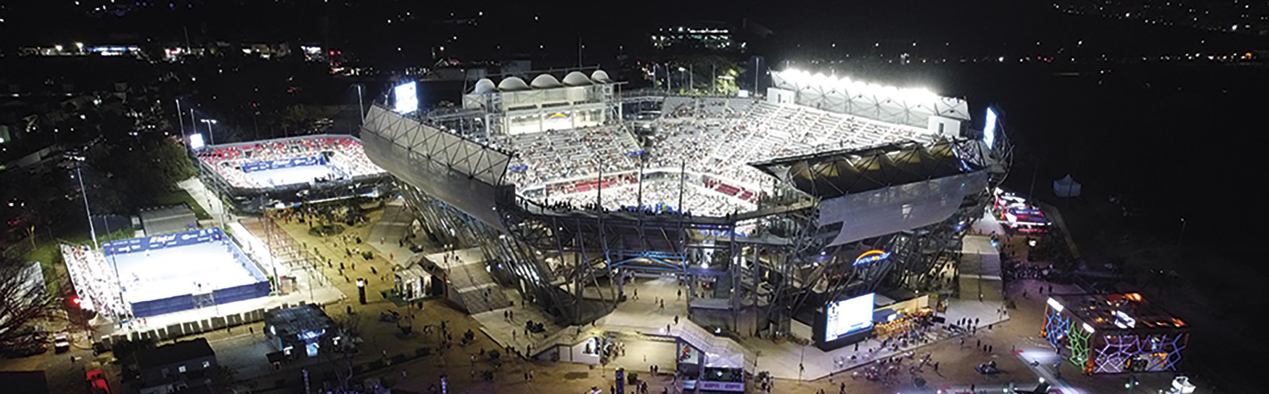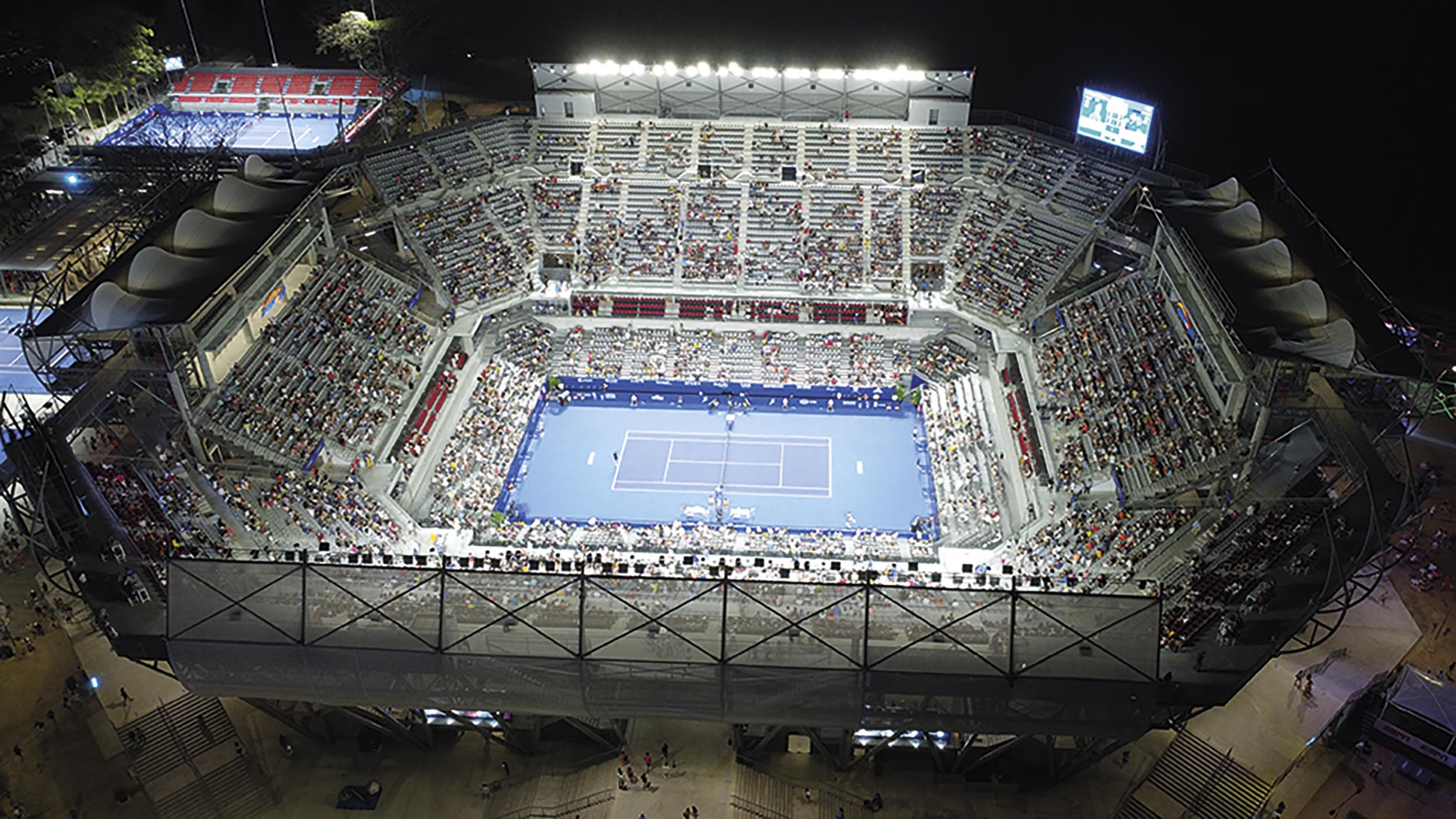En la planta baja del estadio está el área para los tenistas, gimnasio, servicio médico, zona de prensa y área administrativa. Se complementa con espacios para servicio al público, áreas comerciales y, en los niveles superiores, un restaurante con vista 360º, área de transmisión y players lounge. El área de cancha es un espacio multifuncional que permite realizar eventos con distintas configuraciones de acomodo.