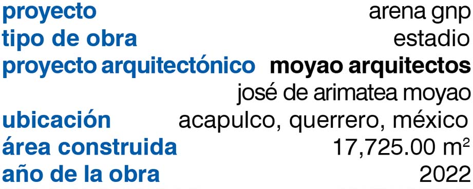 La Arena GNP Seguros (Complejo Deportivo Acapulco) se encuentra ubicada en la Zona Riviera Diamante de Acapulco, es obra del Arq. José de Arimatea Moyao, autor de grandes centros de entretenimiento en México, egresado de la UNAM, donde obtuvo mención honorifica ha sido merecedor de importantes reconocimientos a sus obras.