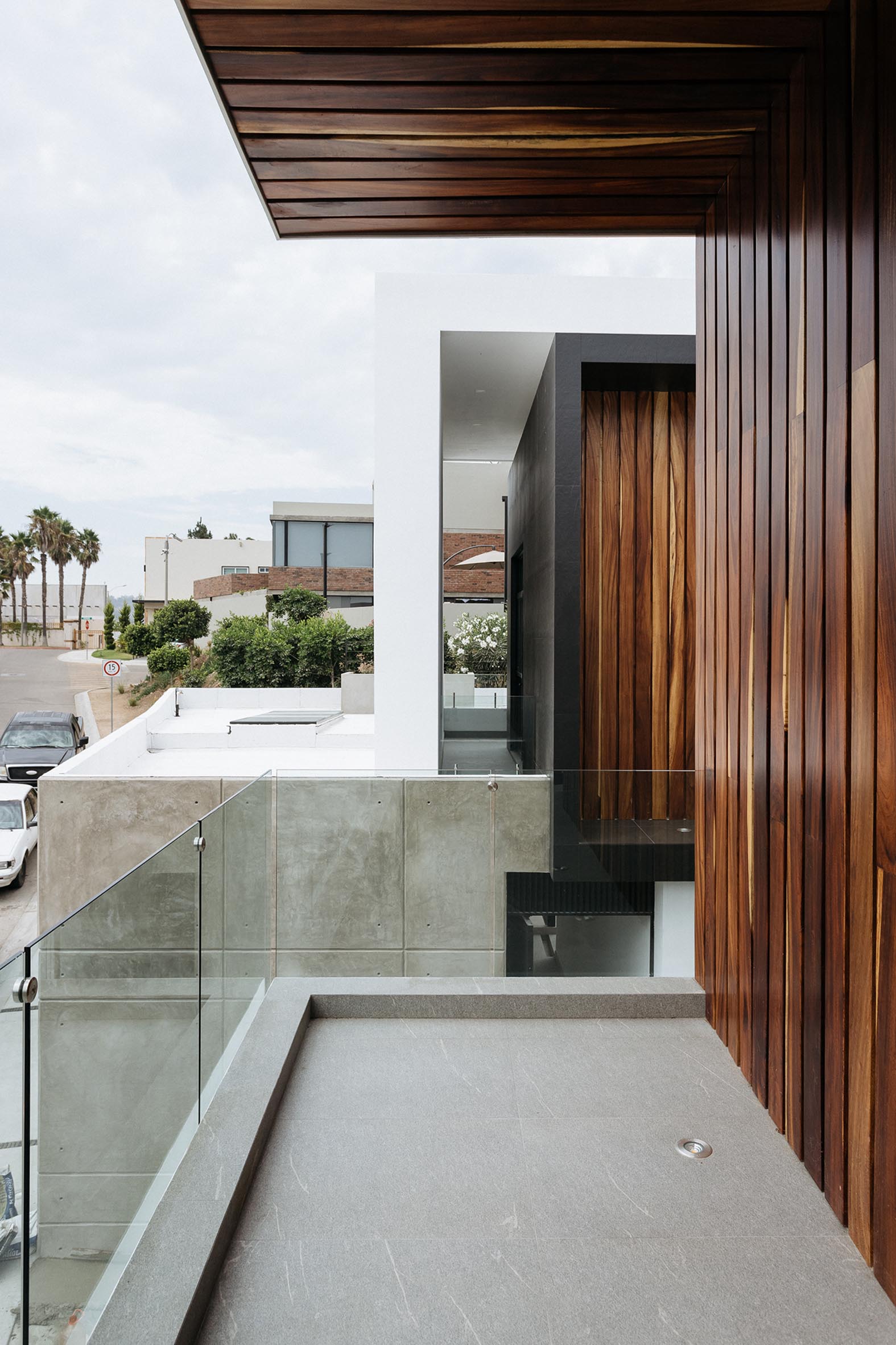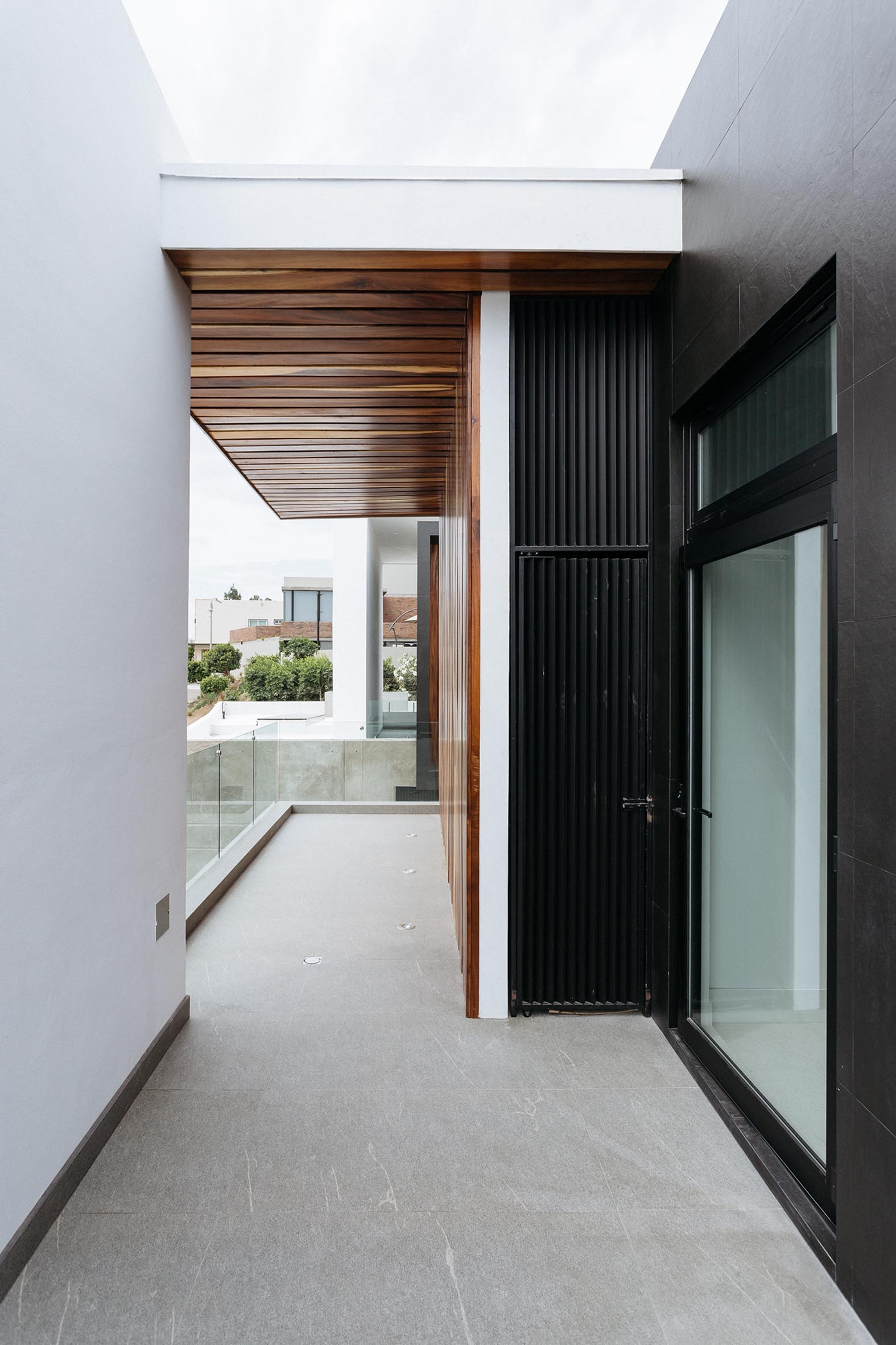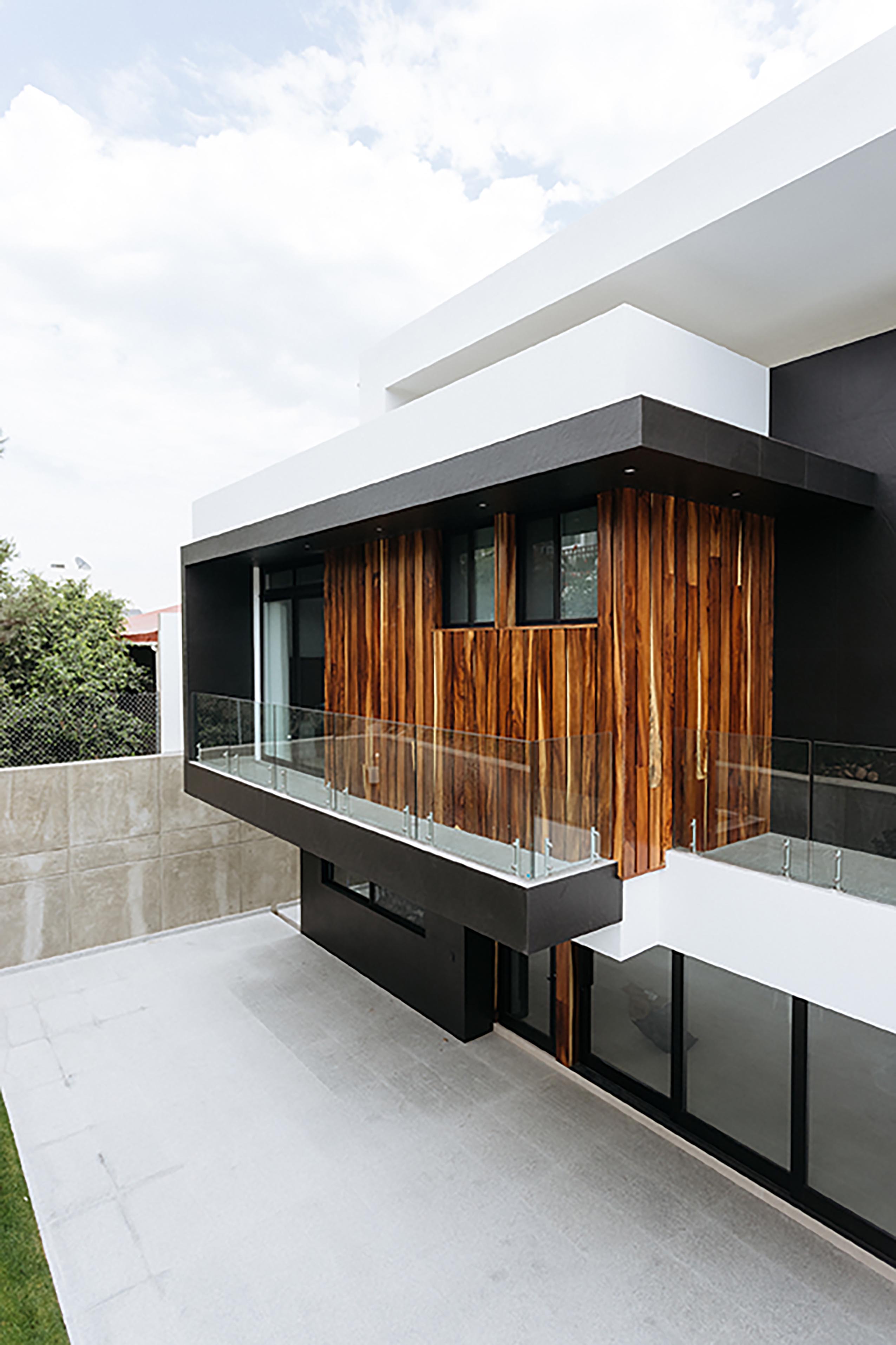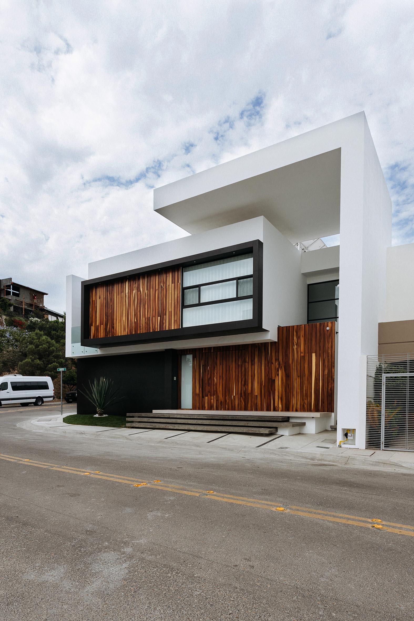 La parota es el material que predomina en el proyecto por su textura y calidez. La cochera privada se ubica en la fachada lateral para que la principal visualmente sea mas limpia y estética.