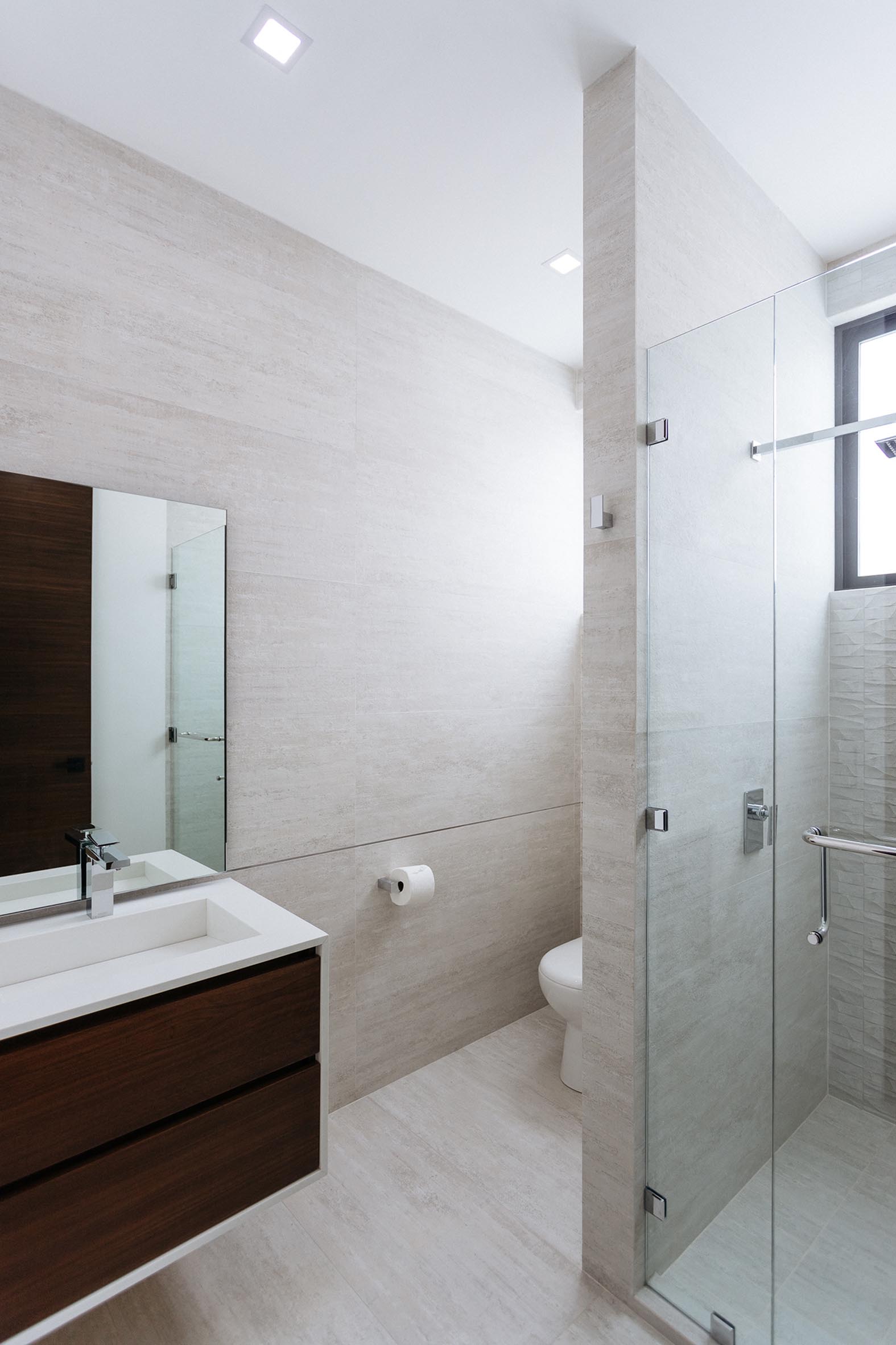 La excelente selección de materiales combinados con los pisos en tonos claros, consigue un brillante contraste de sus elementos y el entorno.