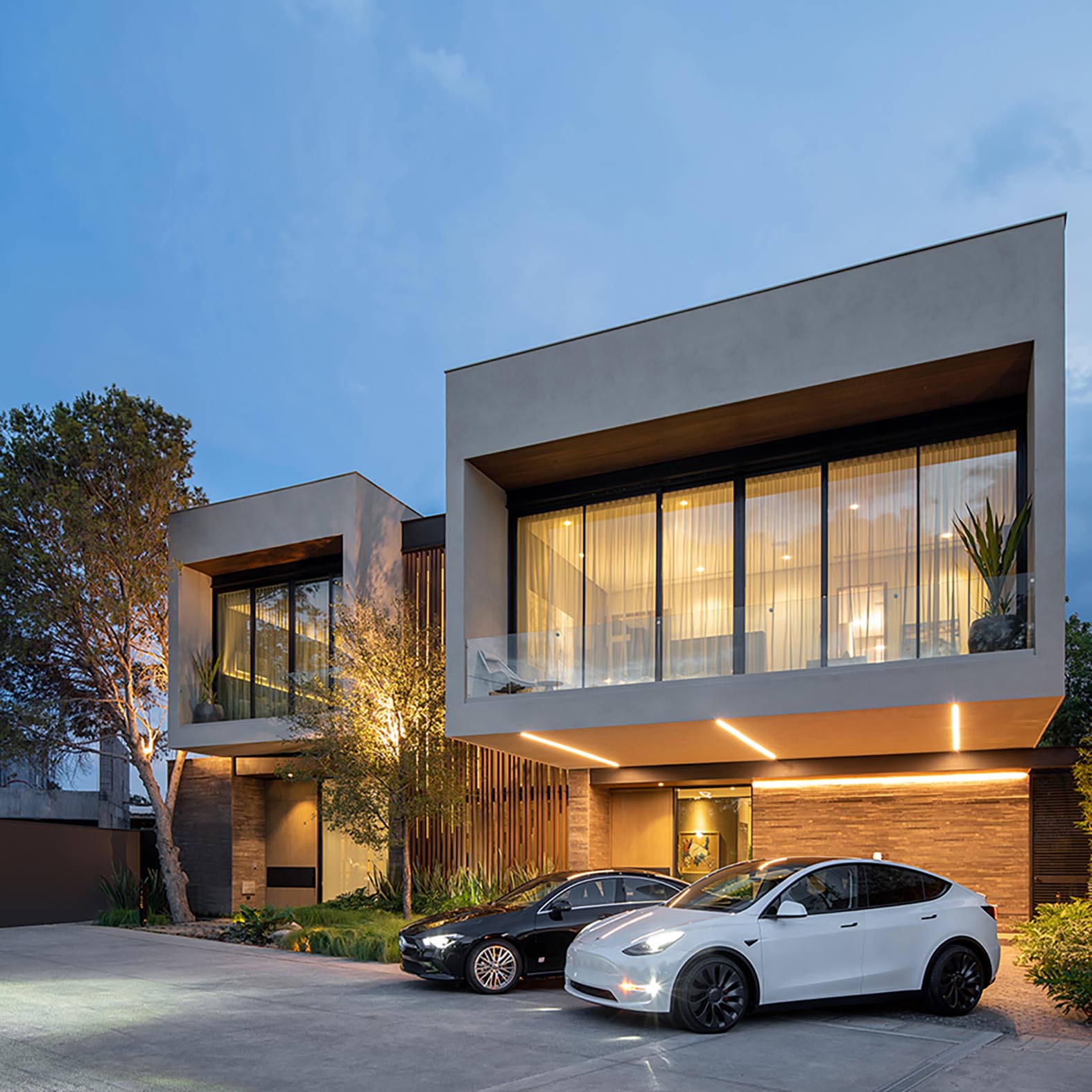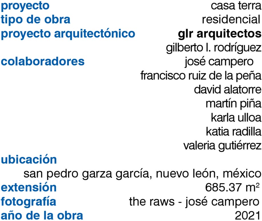 La premisa central de Casa Terra era que fuera la casa más acogedora que hubiéramos hecho jamás. El respeto a la vegetación existente fue fundamental para lograrlo, así como la paleta de materiales, donde buscamos tonalidades grises cálidas en las duelas de ingeniería y maderas de encino lineal, mármol Santo Tomás alistonado en fachadas y mármol Travertino Silver en pisos interiores. El color de la casa evoca el nombre de la misma, la tierra, ya que buscamos que fuera una casa muy conectada con los materiales naturales y con la naturaleza, así como con las hermosas montañas que la circundan.